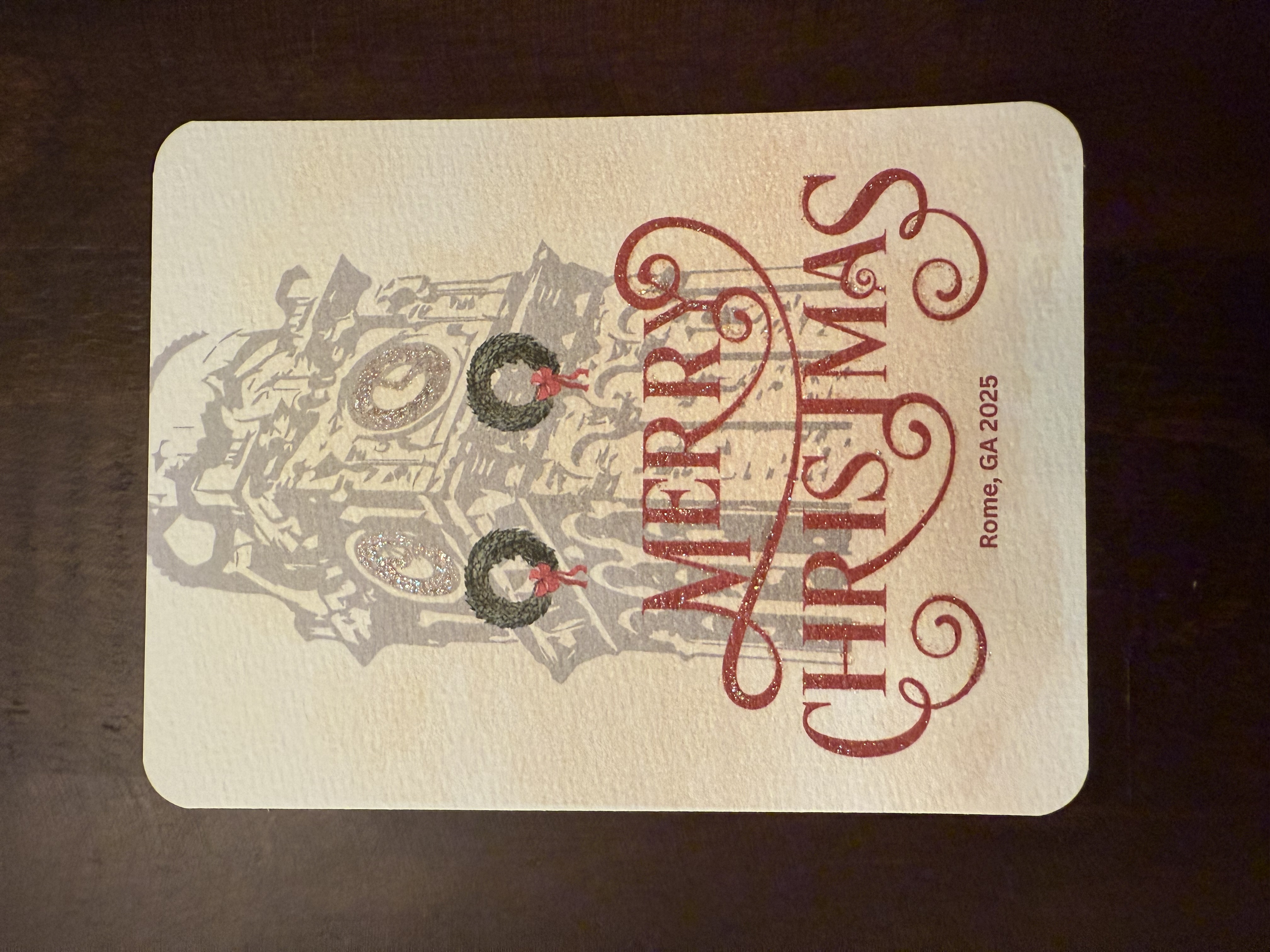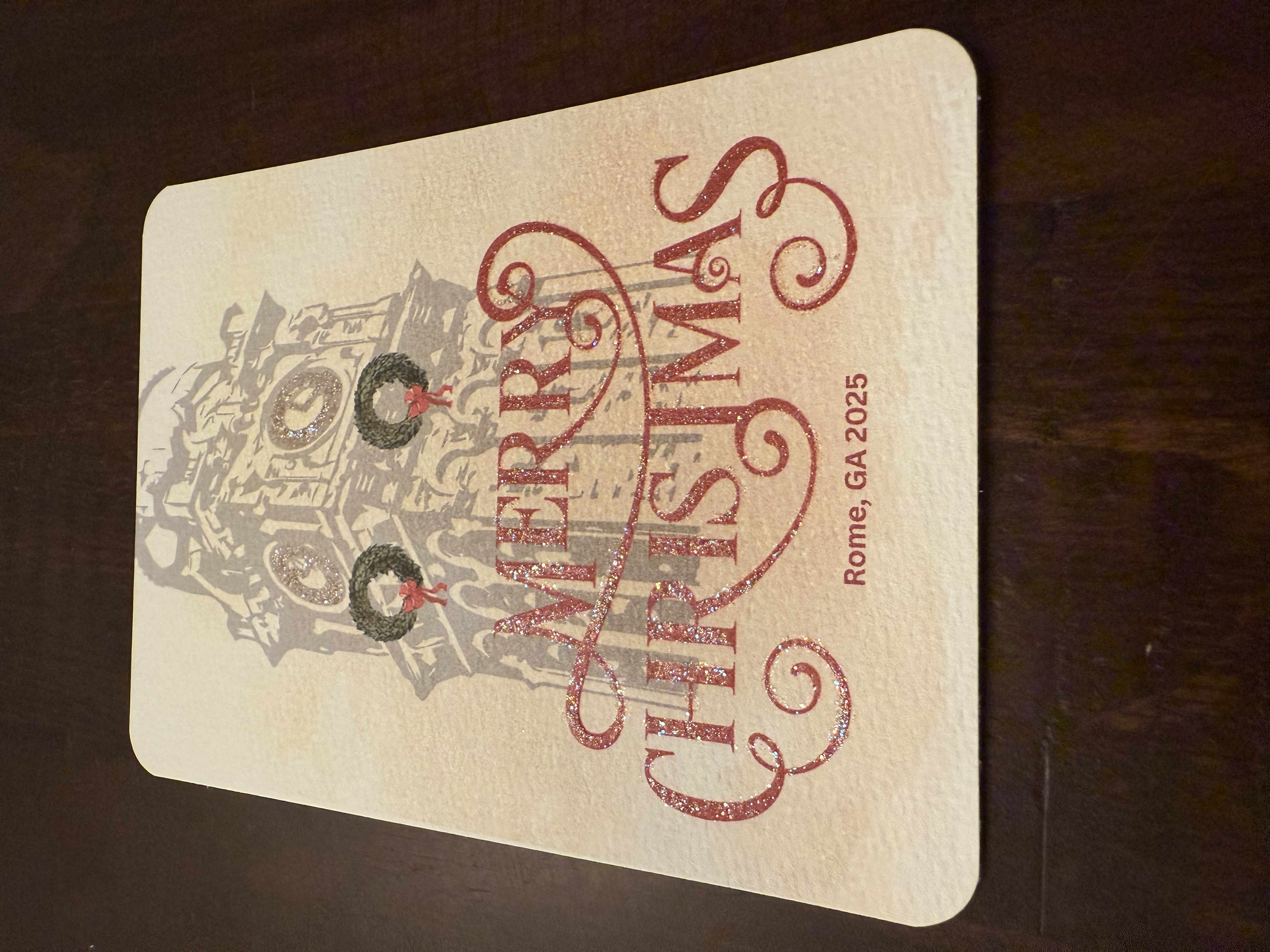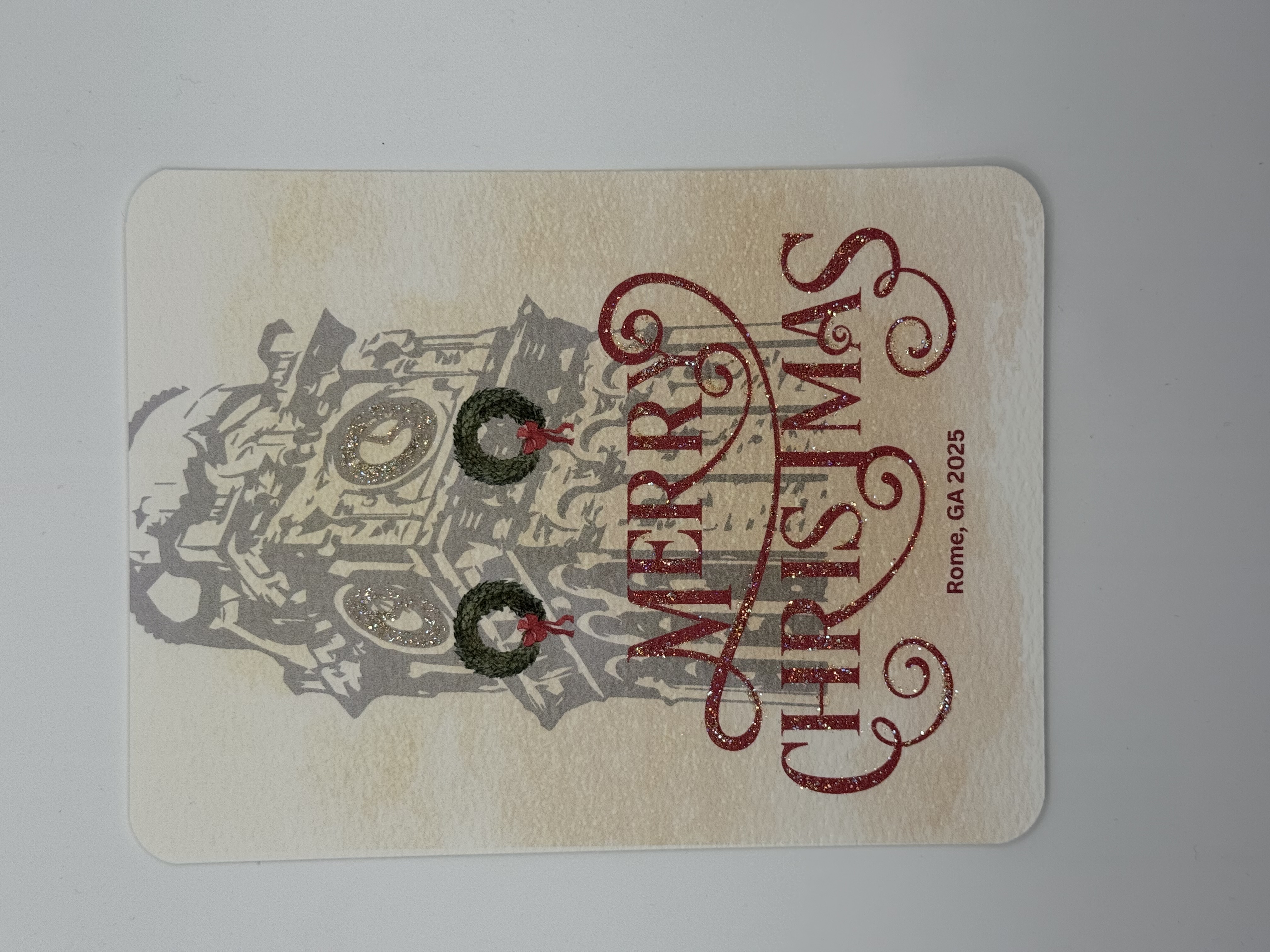 Rome GA Clocktower landmark dressed up in Christmas style.